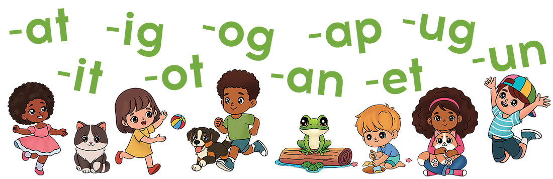 Phase 1: Letter Sounds & CVC (e.g., sat, mat, pig)